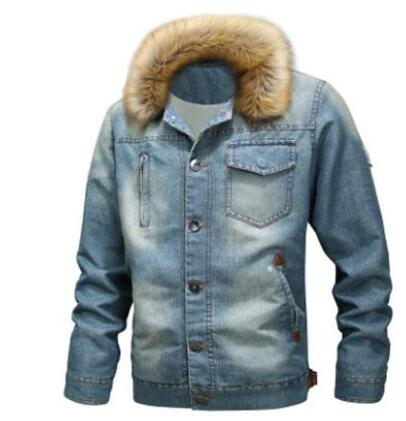 2013Mountainskin men's thick denim jacket winter autumn male fur collar velvet coat male fashion windproof Denim coat S ~ 6XL